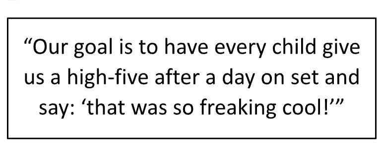 For Safe Sets, the golden standard is to cradle the child actor's innocence and meet them at their specific point of development. We avoid hastening their understanding of life, and believe that each child, as a seasoned performer or first-timer on set, should be able to experience and explore the adventures of life at their own pace (that first kiss belongs to the butterflies in our stomachs, not a fake spin-the-bottle scene on set). The child's well-being should not be sacrificed in service of the storyline and trauma should never be collateral damage for art. We aim for a safe, consensual, playful and uplifting creative experience that simultaneously aims to achieve the directorial vision for the scene.